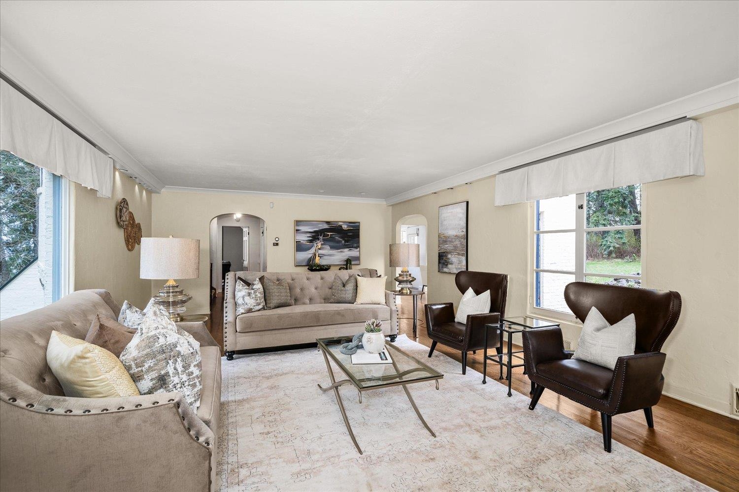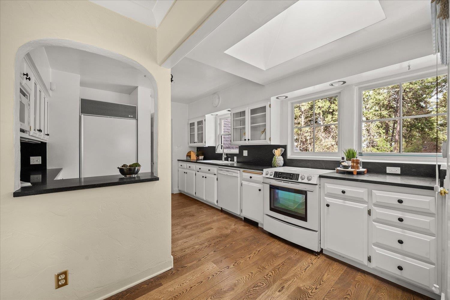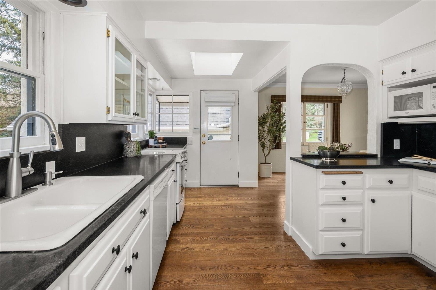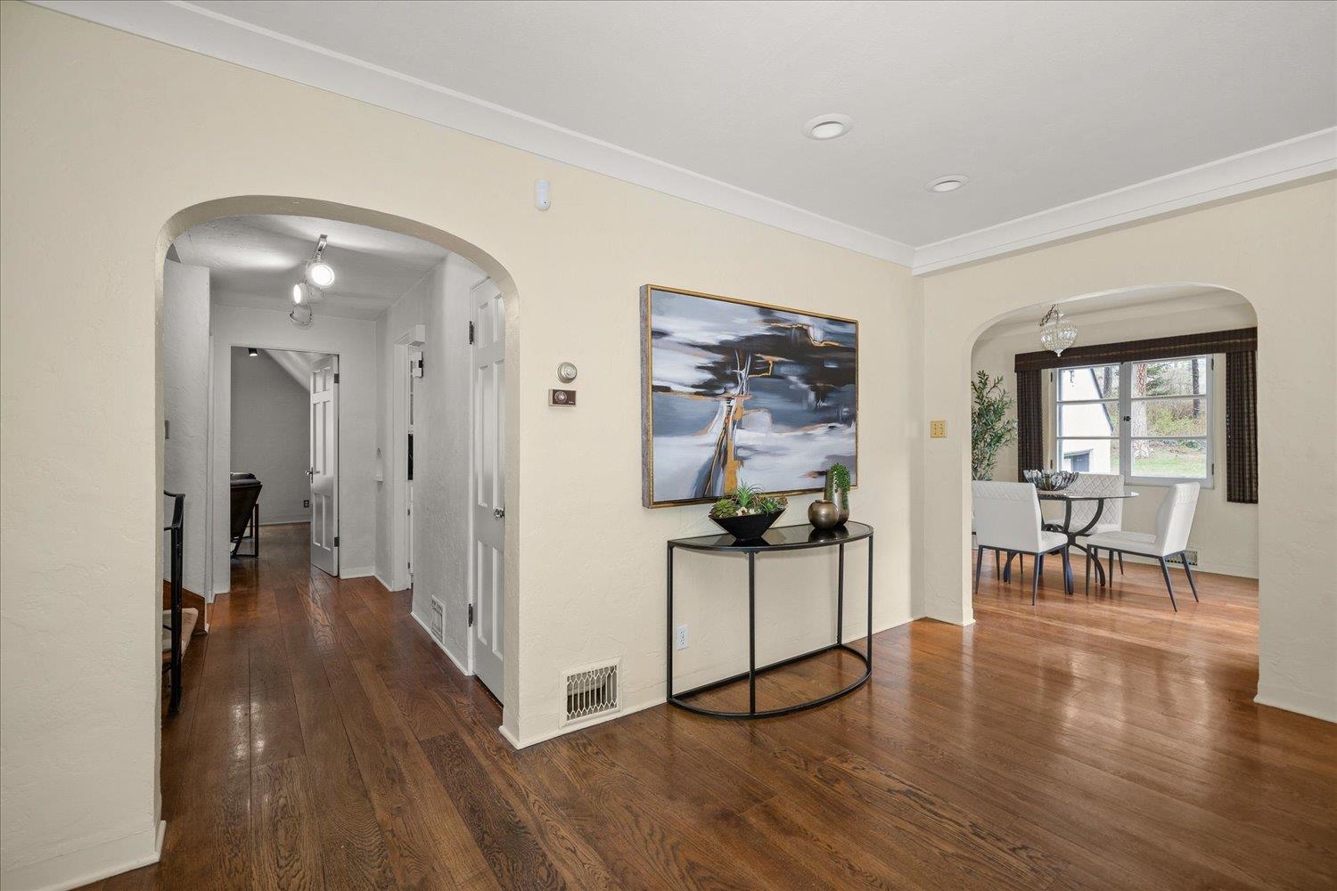 What if home felt like a castle–wrapped in charm, tucked in the trees, and opening directly onto one of Spokane’s most beautiful parks? This gated French Country retreat sits on a rare .62-acre lot backing to Lincoln Park. Inside, over 4,000 sq ft of character-rich living unfolds–turreted entry, coved ceilings, gleaming hardwood floors, and cozy fireplaces. The kitchen pairs new beautiful black granite countertops with warm, natural light–perfect for everyday living and effortless entertaining. Five bedrooms, room to roam, space to add a shop or ADU, and a setting that invites adventure–head out your back porch and head straight into the woods. Tucked into the South Hill, you’re minutes from everything, yet worlds away. Welcome to The Parkside Chateau–a home that captures the heart the moment you arrive.